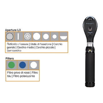 Set di strumenti per otoscopia, oftalmoscopia, retinoscopia e dermatologia.