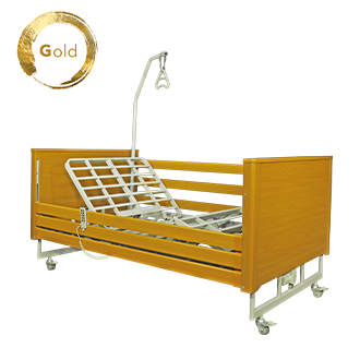 - Sponde laterali di contenimento triple in alluminio, regolabili in altezza e rivestite di una pellicola effetto legno intonata a testiera e pediera